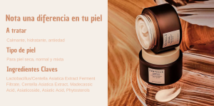 Ingredientes: Centella Asiatica Extract, Glycerin, Diglycerin, 1,2-Hexanediol, Butylene Glycol, Niacinamide, Water, Polyglyceryl-3 Distearate, Caprylic/Capric Triglyceride, Neopentyl Glycol Diheptanoate, Isostearyl Isostearate, Pentaerythrityl Tetraisostearate, Hydrogenated Poly(C6-14 Olefin), Heptyl Undecylenate, Lactobacillus/Centella Asiatica Extract Ferment Filtrate, Bis-Diglyceryl Polyacyladipate-2, Glyceryl Stearate, C14-22 Alcohols, Cetearyl Alcohol, Butyrospermum Parkii (Shea) Butter, Polyglyceryl-2 Stearate, Sodium Acrylate/Sodium Acryloyldimethyl Taurate Copolymer, Glyceryl Stearate Citrate, Arginine, Stearyl Alcohol, Polyisobutene, C12-20 Alkyl Glucoside, Squalane, Sodium Surfactin, Sodium Polyacrylate, Acrylates/C10-30 Alkyl Acrylate Crosspolymer, Carbomer, Hydroxystearic Acid, Ethylhexylglycerin, Adenosine, Hydrogenated Lecithin, Sorbitan Oleate, Caprylyl/Capryl Glucoside, Macadamia Ternifolia Seed Oil, Sodium Hyaluronate, Moringa Oleifera Seed Oil, Sodium Phytate, Ceramide NP, Dextrin, Theobroma Cacao (Cocoa) Extract, Glyceryl Acrylate/Acrylic Acid Copolymer, Polyglyceryl-10 Myristate, Glucose, Stearic Acid, Phytosphingosine, Madecassic Acid, Asiaticoside, Sucrose Distearate, Asiatic Acid, Lauric Acid, Phytosterols, Polyglutamic Acid.